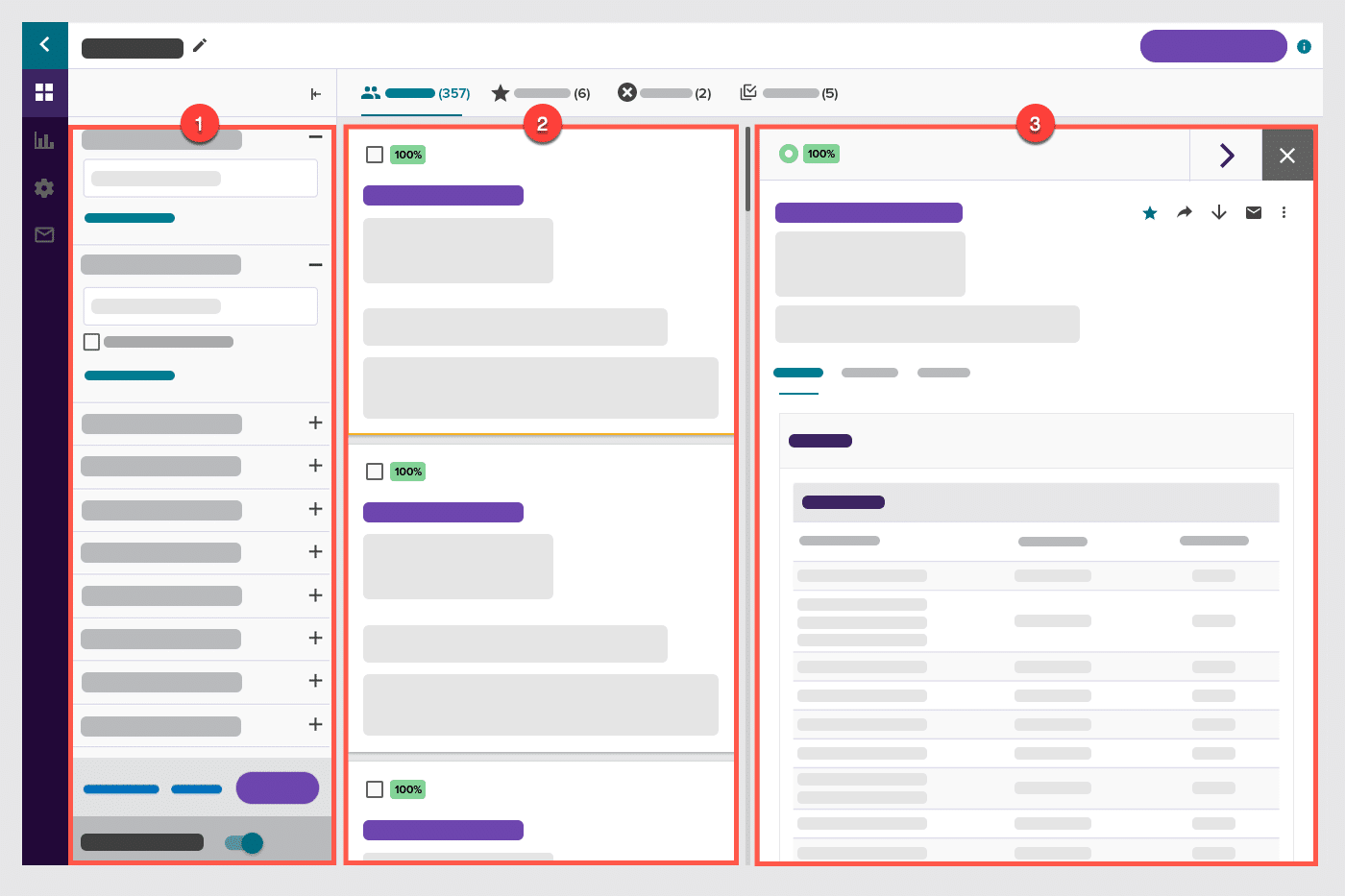 - Candidate Summary: See a few candidate highlights including: name, location, current title, and top skills. Click the card to expose more candidate information in the right panel.