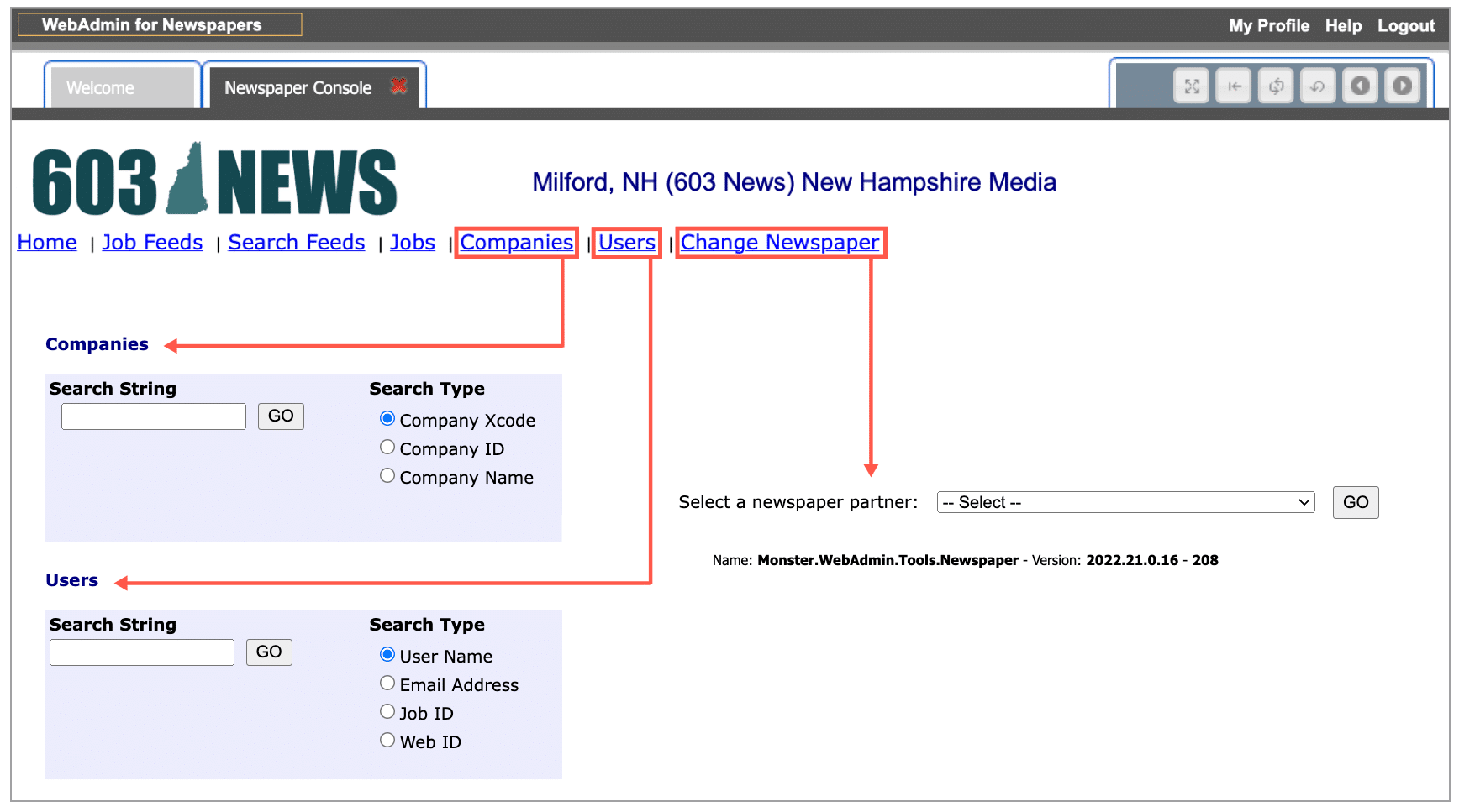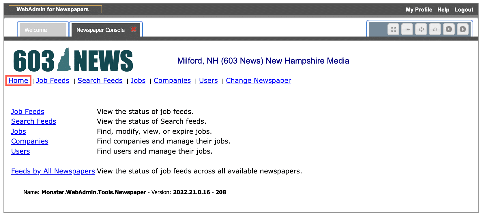 Review our Access & Review Job Feeds article to dive into the functionality of Monster’s Newspaper Admin tool.