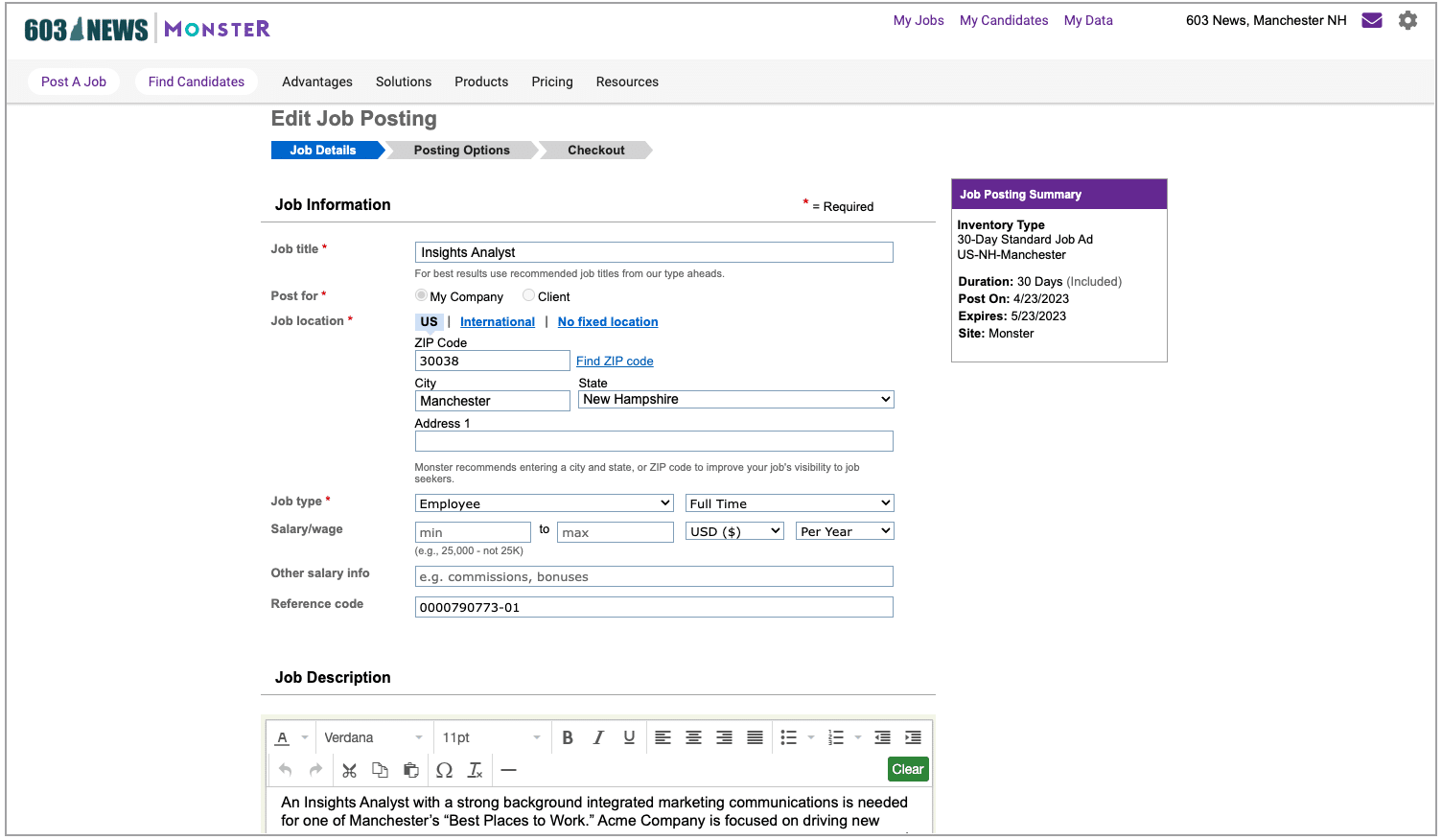 For active jobs, this will show a preview of the job as seen by a job seeker on the job search site.