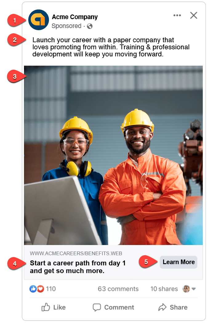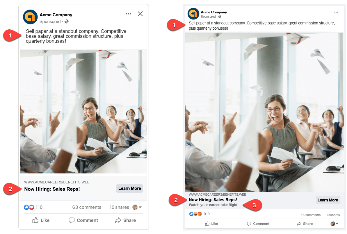 When writing the messaging for your social job ad, the first two key areas listed below are viewable to mobile users.