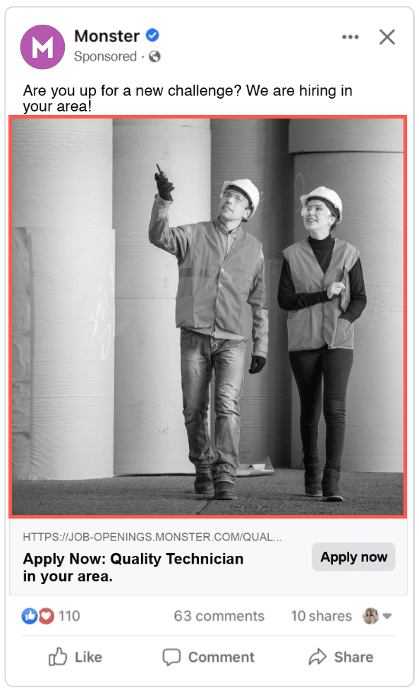 Monster highly recommends you to provide your own company branded images/videos to increase brand recognition and help your social job ad stand out. Review image and video specs below for details.
