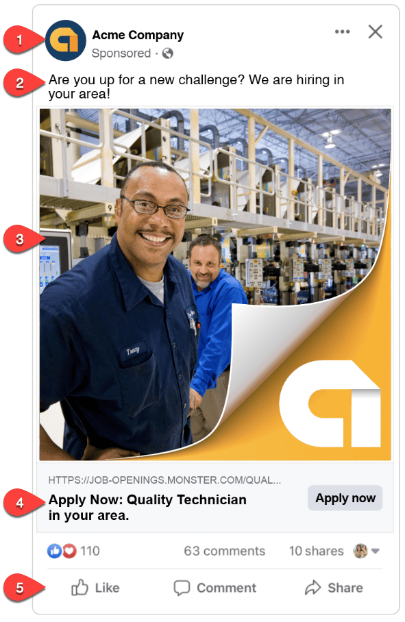 1. Social Media Handle: By default, Social Job Ads are promoted on the Monster channel, but you can also authorize your own. Posting from your company’s social media accounts will allow you to interact with commenters and gain more likes and follows.