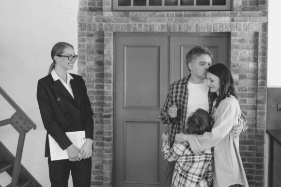 Real estate broker helping a family close on a house purchase.